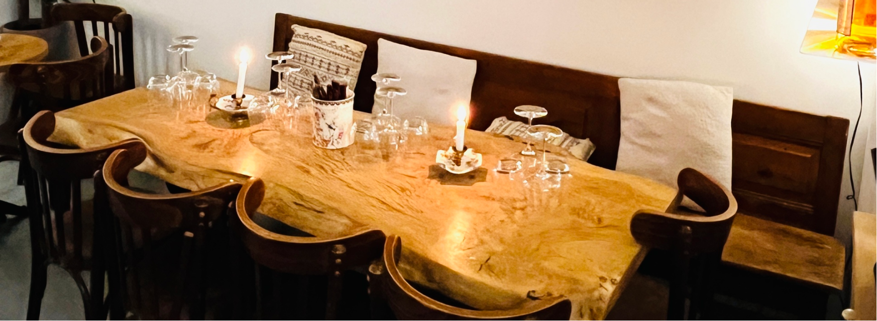 Bois brut, lumière tamisée, murs ornés de bouteilles : l’ambiance est chaleureuse et intimiste. Le mobilier simple et rustique invite au partage, à la manière d’une véritable cave à manger. L’atmosphère plaît autant aux collègues venus décompresser après le travail qu’aux couples à la recherche d’une parenthèse cosy proche du Parc Martin Luther King.